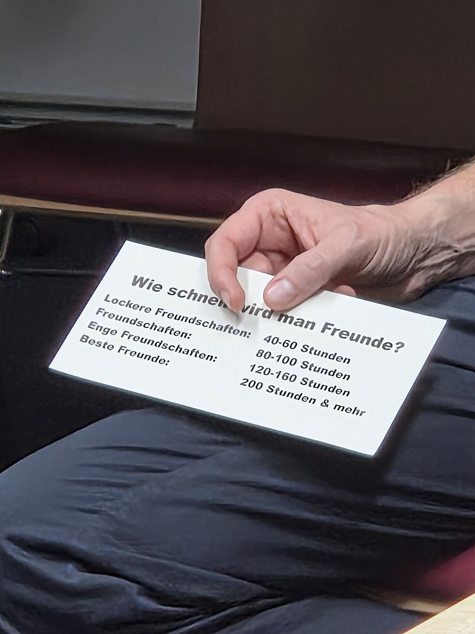 Was macht eine Freundschaft eigentlich aus? Welche Arten von Freundschaften gibt es – und wie oft muss man sich begegnen, um von einer echten Freundschaft sprechen zu können? Diese Fragen standen im Mittelpunkt und regten zum Nachdenken an.