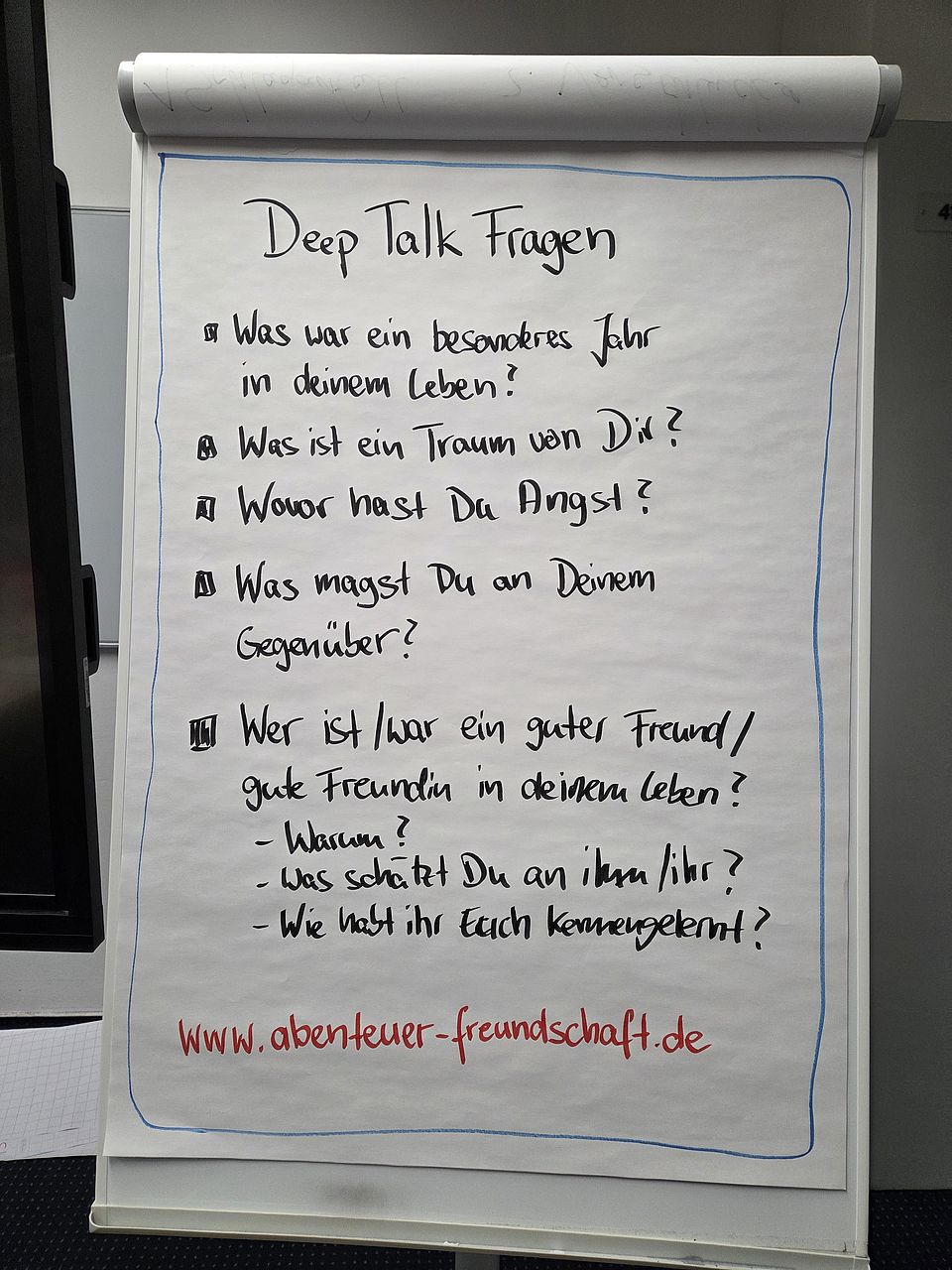 „Welches war dein bestes Jahr – und warum?“ oder „Welche positiven Eigenschaften hat dein Gesprächspartner?“